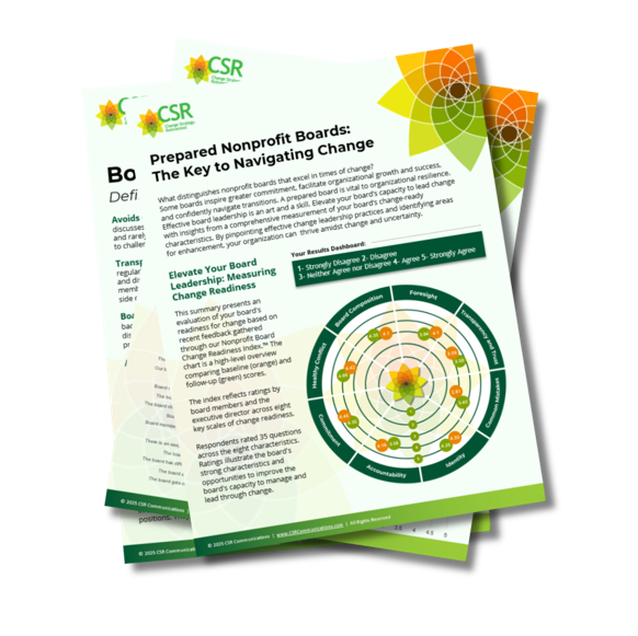 Because your nonprofit board can't lead through change it's not ready for. Find out if your board is ready today with the BoardCQ™ change readiness assessment.